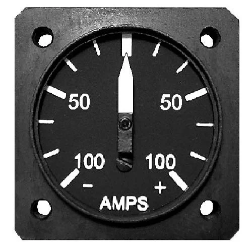 The ammeter indicates whether or not the alternator or generator is producing sufficient current to power the electrical components and recharge the battery. The instrument has the zero point in the middle. When the needle is shifted toward the positive side on the right, it indicates that the battery is being charged. When it is shifted toward the left, it indicates that more current is being drawn from the battery than is being replaced. A full-scale negative deflection means that the alternator or generator has failed. A full-scale positive deflection means that the voltage regulator has failed, allowing the battery to receive too much charge and potentially overheat. In this case the circuit breaker for the alternator / generator should be pulled to prevent the possibility of the battery catching on fire.