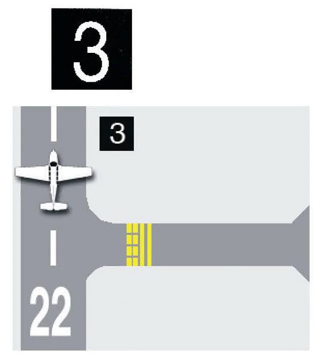 This sign indicates the distance of runway remaining in thousands of feet. In the example above 3,000 feet remain on the landing runway.
